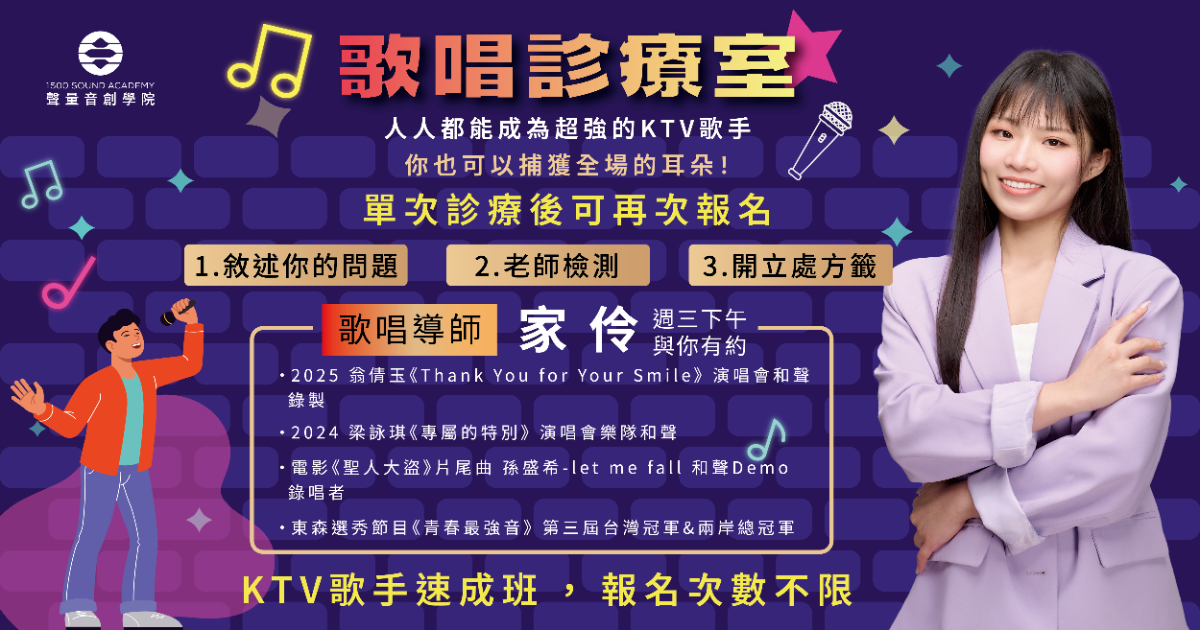 1500 SOUND ACADEMY 聲量音創學院 2/11 ( 三 ) 家伶 歌唱診療室